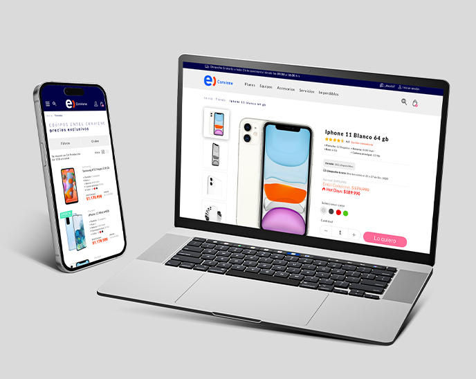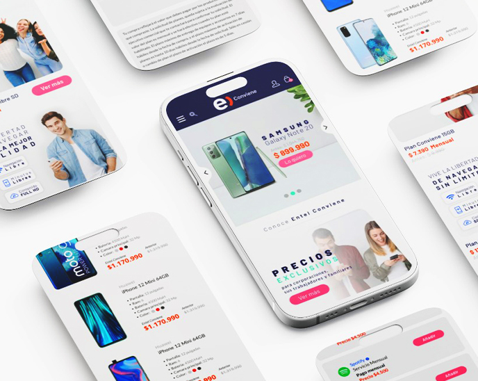 El sitio web e-commerce ENTEL CONVIENE fue desarrollado bajo una estrategia Mobile First, con el objetivo de priorizar la experiencia de los usuarios desde dispositivos móviles, que hoy representan la mayoría del tráfico web.